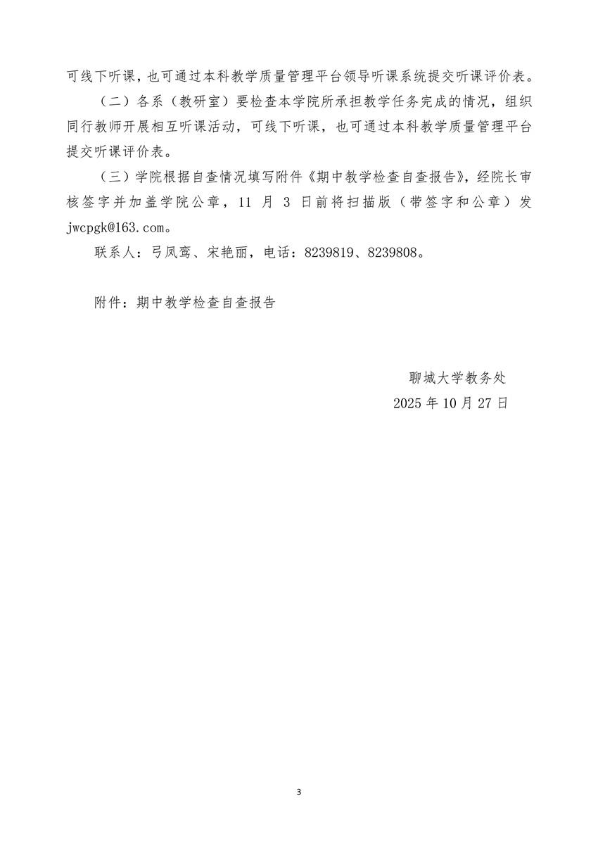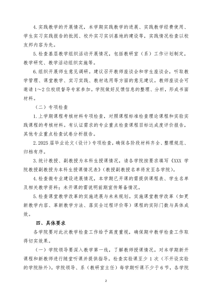 关于开展2025-2026学年第一学期期中教学检查工作的通知