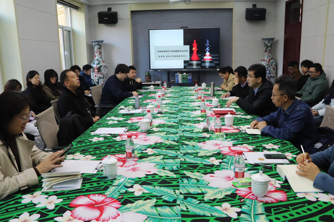 11月14日上午,复旦大学美国研究中心副主任、博士生导师赵明昊教授应邀做客聊大讲坛,做题为《中美战略博弈与我国国家安全形势》的学术讲座。讲座由聊城大学历史文化与旅游学院院长、太平洋岛国研究中心主任、区域国别研究院执行院长赵少峰主持,我校部分师生参会旁听。 他强调,国家安全是民族复兴的根基,必须坚定不移地贯彻总体国家安全观。赵明昊结合自身科研经验指出,做历史研究应秉持“小切口、大问题”“小切口、大关切”的研究思路,从细微处入手,聚焦重大问题与时代需求,为学术研究提供更具深度与现实意义的视角。 本次讲座内容丰富、见解深刻,使师生对中美关系的复杂性有了更深入的认识,对国家安全重要性有了更加清晰的理解,为我校区域国别研究的深化与拓展提供了创新性的思路和明确的方向指引,对相关学科建设与人才培养具有重要的推动作用。 专家介绍 赵明昊,复旦大学美国研究中心副主任、教授、博士生导师,教育部美国联合研究院副院长,入选国家级人才计划。研究领域为中美关系、国际安全与战略、大国科技竞争。兼任北京大学国际战略研究院、清华大学战略与安全研究中心客座研究员,亚太安全合作理事会(CSCAP)中国委员会委员等学术职务。曾在中共中央对外联络部长期从事国际问题研究工作。专著有《美国竞争性对华战略及其对“一带一路”的影响》《战略克制:新型中美关系的构建》。在《世界经济与政治》等CSSCI和SSCI刊物发表论文60余篇。主持国家社科基金重大项目以及国家发展改革委、外交部、科技部、商务部、军事科学院等省部级项目。撰写的决策咨询报告多次获得中央主要领导、中央政治局常委、中央政治局委员等批示。