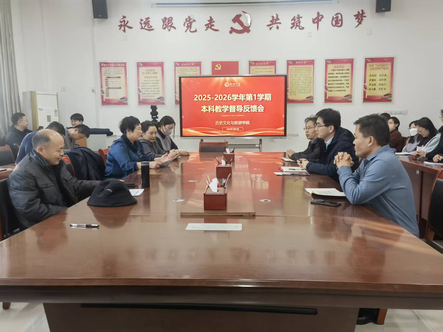 为充分发挥学校和学院两级本科教学督导的作用,更好地形成教学质量监控的闭环,以促进教师尤其是年轻教师的专业成长,保障教学质量,学院于1月21日下午在104会议室举行了本科教学督导反馈会。本学期承担我院教学督导任务的学校教学督导组组长、文学院董秀梅老师和督导组成员、我院辛灵美老师,以及学院本科教学督导员江心力老师、张思老师应邀出席。本次反馈会由学院赵少峰院长主持,学院全体教师参加。 董秀梅老师代表学校督导组对我院2025-2026学年第一学期的本科教学情况进行了集中反馈。本学期学校督导组共听课、看课60节,涉及到我院历史学、旅游管理和外国语言与外国历史三个专业的56名教师。督导组首先充分肯定了我院各门课程任课教师的总体表现,认为各位老师的课程准备非常充分,各门课程的教学目标十分明确,为学生搭建起了扎实的知识框架。督导组还非常有针对性地指出了我院本科教学中存在的一些问题,主要包括:多媒体课件的设计、制作亟需提升,部分教师的课件满屏都是文字;师生互动欠缺,课堂抬头率低,部分教师始终离不开多媒体操作台;教学内容的研究和取舍有待加强,高中学过的内容仍然重复讲授,课程吸引力不足;理论课程就理论而理论,案例教学急需增加;课堂教学纪律有待加强,等等。随后,学院的两位督导江心力老师和张思老师也分别就专业课程的课程思政融入、教学方法、板书和教学设计等进行了反馈,并就如何提高学生学习积极性和课堂参与度、改善学生课堂学习状态等问题进行了重点探讨。 赵少峰院长对各位督导专家一学期来的辛勤付出表示了衷心感谢。他指出,学院始终将督导工作视为监督教学过程、提升教学实效的重要手段,针对督导反馈的各项问题,学院将逐条制定改进措施,持续加强教学管理,优化教学资源配置,不断完善本科人才培养质量保障体系,为推动学院教育教学高质量发展筑牢基础。 作为学院教学质量监控体系的重要实践和督导与教师之间交流的有效载体,本次教学督导反馈会通过“听课—反馈”的闭环模式,为学院精准把脉教学现状、靶向施策、精准发力提供了重要依据,也为落实“持续改进”理念指明了方向。