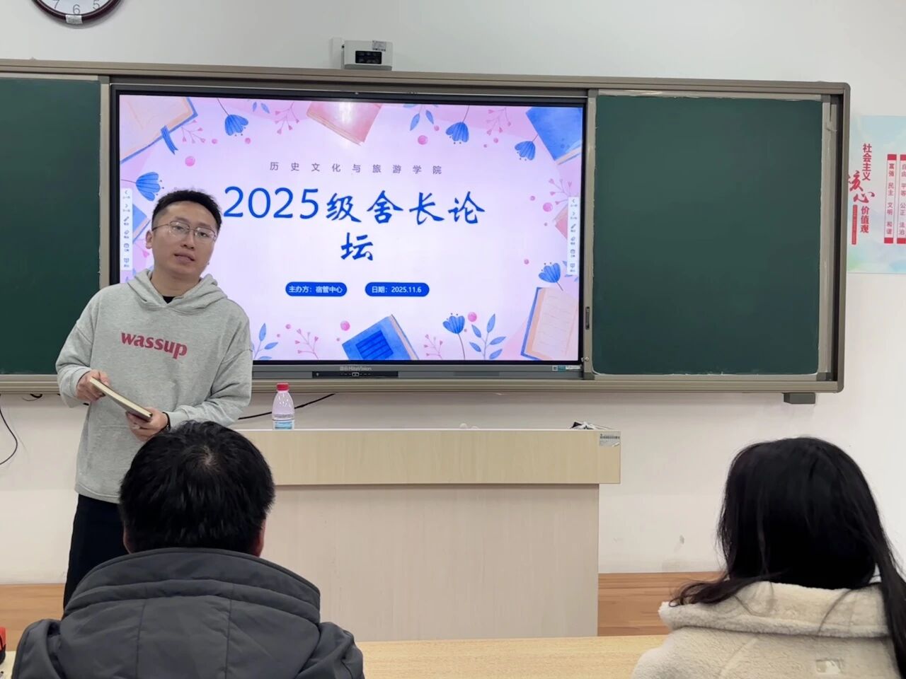 为分享宿舍管理经验,提升舍长责任意识与实操能力,营造安全和谐的住宿环境,11月6日,我院于6#A305教室举办2025级舍长论坛会。学院辅导员王旭辉、2025级宿舍长参加本次论坛会。 王旭辉从宿舍建设角度出发,为舍长提供实用的宿舍管理建议和方法。他指出,宿舍是一个集体,舍长应当发挥桥梁纽带的作用,主动协调室友之间的关系,增强宿舍的凝聚力和向心力。在宿舍安全和卫生方面,王旭辉详细介绍宿舍卫生检查细则,重点强调用电安全规范与违禁品管控要求,并针对宿舍长提出的疑问进行现场解答,提供切实可行的解决方案。 宿管中心负责人详细介绍宿舍管理的各项规章制度,包括宿舍检查细则,违纪处理,消防安全注意事项等多个方面,具体全面地帮助宿舍长理清宿舍检查内容及执行标准。同时,她积极回应舍长诉求,强调遵守规章制度的重要性,并呼吁舍长以身作则,营造有序安全温馨的宿舍环境。 论坛会结束后,2025级宿舍长纷纷表示,此次舍长论坛会为自己日后管理宿舍明晰方向,进一步强化集体意识,未来将以实际行动构建温馨和谐的宿舍氛围。 本次舍长论坛会的顺利举办,不仅有利于切实解决学生在作息协调、卫生维护、矛盾化解等方面的困扰,使其拥有更和谐舒适的宿舍生活环境,而且有利于培养学生的自律意识与责任意识,为新学期宿舍管理工作的有序开展奠定基础。 (供稿:周琦鑫 张诺 陆雅馨 摄影:张诺 陆雅馨 初审:陆雅馨 复审:宋佳珊 终审:尤姗姗)
