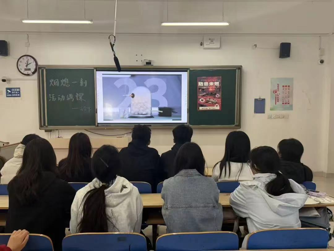 为引导学生深刻认清吸烟危害,养成健康习惯,树立健康生活观念,11月16日,历史文化与旅游学院于6#A303教室举办“烟熄一刻,活力满课”禁烟宣传活动。 禁烟宣传员结合校园实际场景,细致深入地剖析吸烟带来的危害。宣传员表示,烟草中的化学物质会对人体造成不可逆的损伤,且未熄灭的烟头极易引燃易燃物品,给校园公共安全埋下隐患。 宣传员组织学生观看禁烟教育影片,影片内容全面深入,通过生动的画面和真实的案例,让学生直观地感受到吸烟的危害,增强学生的禁烟观念和敬畏意识。针对校园火灾应急处置,宣传员强调,火情发生时需保持冷静,切忌慌乱,应牢记火灾逃生原则,根据周围环境采取相应的逃生路径,并及时发出求救信号。 在交流分享环节,学生结合活动所学,对禁烟与消防知识进行系统总结。他们纷纷表示通过本次活动不仅对烟草的危害有了更为全面的认知,更熟练掌握火场实用逃生技能,进一步理解“防患未然”的安全理念。在展板签字环节,学生在“无烟承诺”展板上郑重签字,承诺未来将主动参与禁烟活动,推动构筑校园无烟环境。 本次活动的顺利举办,不仅帮助学生深化对烟草危害的全方位认知,使其切实意识到营造无烟校园环境的重要性,而且有利于加强学生的消防安全与禁烟意识,推动学生成为禁烟行动的坚定倡导者与消防安全的主动守护者,为营造健康和谐的校园环境贡献力量。 (供稿:朱研 张诺 陆雅馨 初审:陆雅馨 复审:宋佳珊 终审:尤姗姗)