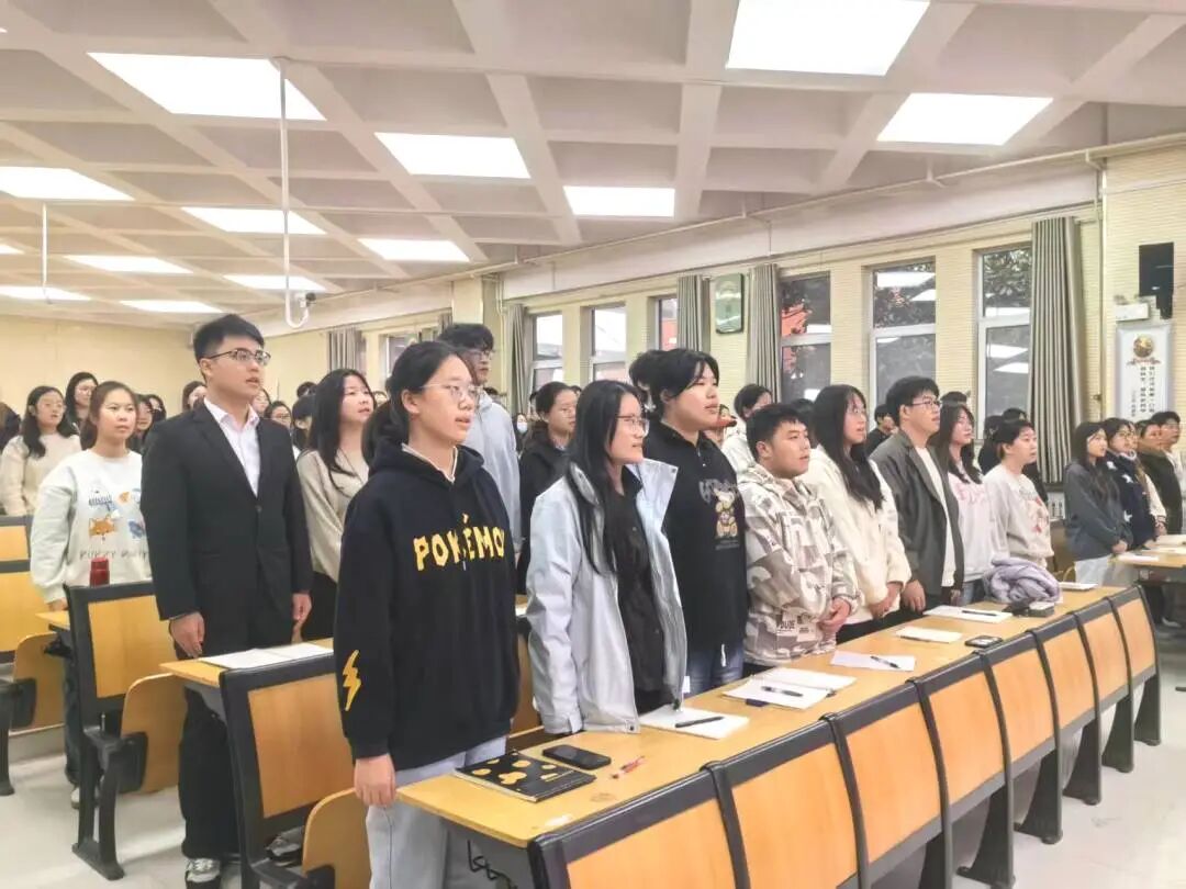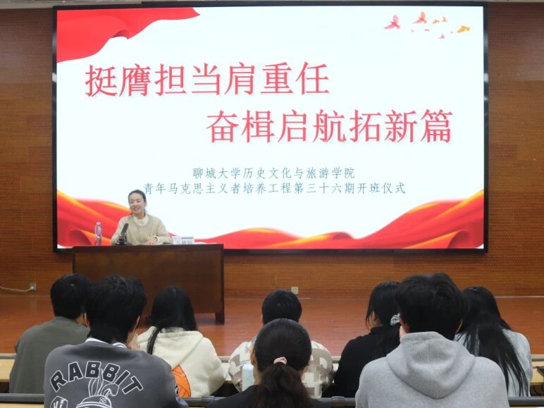 为引导学生争做新时代青年马克思主义者,凝聚团结奋进的青春力量,筑牢理想信念根基,11月6日,我院于6#A106报告厅举办第三十六期“青马工程”开班仪式暨专题学习会。学院团委书记石晓晗及第三十六期全体青马学员出席会议。 在庄严的国歌声中,全体人员肃立奏唱,激昂的旋律凝聚初心使命,为本次活动奠定庄重昂扬的基调。石晓晗围绕“青马工程”在青年成长成才中的意义展开系统阐述,深刻指出“青马工程”作为培养青年马克思主义者的核心平台,是引导青年坚定理想信念、厚植家国情怀的思想熔炉,对青年成长为担当民族复兴大任的时代新人具有不可替代的重要意义。石晓晗以优秀青年的典型事迹为案例,引导学员将个人理想与国家发展大局紧密结合,进一步明确自身成长方向,涵养行动自觉。 第三十五期优秀学员代表杜兴羽,回顾自己在青马班的理论学习与实践经历,分享学思践悟的体会,鼓励新学员坚定信仰、勇担使命,做到与时代同频共振、与人民同心同行。 第三十六期新学员代表侯欣灵在发言中表达对加入青马工程的荣幸,承诺将严守纪律,以青年马克思主义者的标准要求自己,做到知行合一、主动作为。 在观看学习影片后,本次开班仪式落下帷幕。学员一致表示,将以此次学习为起点,勤学善思,笃行实干,努力成长为有理想、敢担当、能吃苦、肯奋斗的新时代青年。 本次开班仪式的顺利举办,有利于推动学员在强国建设和民族复兴征程中主动作为、奋勇争先,书写无愧于时代的青春华章。下一步,学院将围绕“青马工程”培养目标,持续开展形式创新的专题教育活动,聚焦青年政治素养锤炼与综合能力提升,为党和国家培育高素质青年政治骨干。 (供稿:郭艺泽 摄影:郭艺泽 初审:郭艺泽 复审:宋佳珊 终审:石晓晗 尤姗姗)