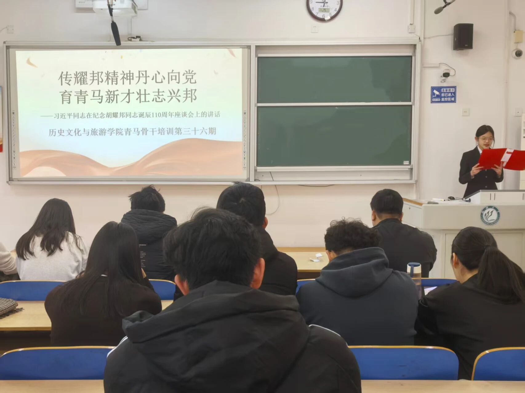 为弘扬耀邦精神,坚定青年学子理想信念,激励学生砥砺品格、勇担时代使命,11月30日,我院于6#A502教室举办“传耀邦精神丹心向党,育青马新才壮志兴邦”第三十六期青马工程培训会。 培训会上,主讲人围绕胡耀邦同志的生平经历展开讲解,系统梳理其投身革命、履职为民的历程,通过具体事例生动展现老一辈革命家为党和人民事业鞠躬尽瘁的笃行担当,让学生直观感悟其始终不渝的初心坚守。同时,主讲人深入阐释耀邦同志求真务实、敢为人先的精神内核与价值追求,引导学生在传承红色基因中汲取奋进力量。 为强化学习效果,全体成员集中观看电视文献片《胡耀邦》。影片以纪实视角呈现胡耀邦同志的人生轨迹与历史贡献,清晰呈现其在平反冤假错案、推动真理标准大讨论等历史进程中的卓越贡献,助力学生深刻领会他为国家发展、人民幸福所付出的艰辛努力。互动交流环节,学生结合自身学习生活实际分享感悟,在思想碰撞中深化对耀邦精神的认同,现场气氛热烈而有序。 本次培训会的顺利举办,有效深化学生对耀邦精神的理解与把握,推动青年明确个人成长与国家发展的紧密联结,进一步激发其传承红色血脉、投身时代建设的责任担当。下一步,学院将持续拓展青马工程培训的广度与深度,引导学生在日常学习与实践中锤炼过硬本领,助力学生成长为堪当民族复兴大任的时代新人。 (供稿:李心悦 张旭 郭艺泽 初审:郭艺泽 复审:宋佳珊 终审:尤姗姗)