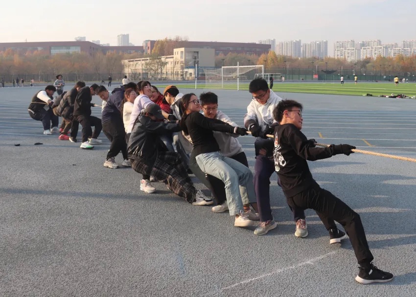 劲聚绳端凝众心,力扛赛场显担当。为活跃校园体育文化氛围,锤炼同学们的坚韧意志,促进各班级间的交流与合作,11月22日,我院于东校区田径场举办“绳聚青春,力拔山河”新生拔河比赛。 本次拔河比赛采用男女团体赛制,以班级为单位每队15人,男生10人,女生5人。赛前队员们神情激昂,商定比赛打法。比赛过程中,同学们秉持团结协作、永不言弃的精神全力以赴。面对强劲对手,大家沉着应对,实时调整站位与发力节奏。同学们心领神会、同步发力,红绳在双方拉扯间缓慢移动,每一寸僵持都凝聚着团队的力量。 比分胶着之际,同学们咬紧牙关、攥紧绳索,额间汗珠滚落仍丝毫不敢松懈,凭借坚定信念稳守阵地、逆势追赶,一次次顶住压力将绳势拉向己方。即便体力逐渐透支,同学们依旧相互鼓劲、坚守好自己的位置,用默契配合与顽强毅力扛住每一轮挑战,充分展现出我院同学们坚韧不拔的意志与凝心聚力的班级风采。经过多轮激烈角逐,本次拔河比赛圆满落幕,2025级5班获得冠军,6班获得亚军,1班获得季军。 团结聚合力,奋斗显担当。本次比赛的顺利举办,不仅丰富同学们的课余生活,增强同学们的拼搏精神,凝聚各班级的集体向心力,而且为营造活力昂扬的校园氛围注入动力。未来,学院将从多方面深化体育育人成效,通过交流竞技展现学子风采,拓宽同学们的社交视野,为校园体育文化建设贡献更多力量。 (供稿:刘乘希 摄影:刘乘希 肖晶晶 初审:黄博雨 复审:宋佳珊 终审:尤姗姗)