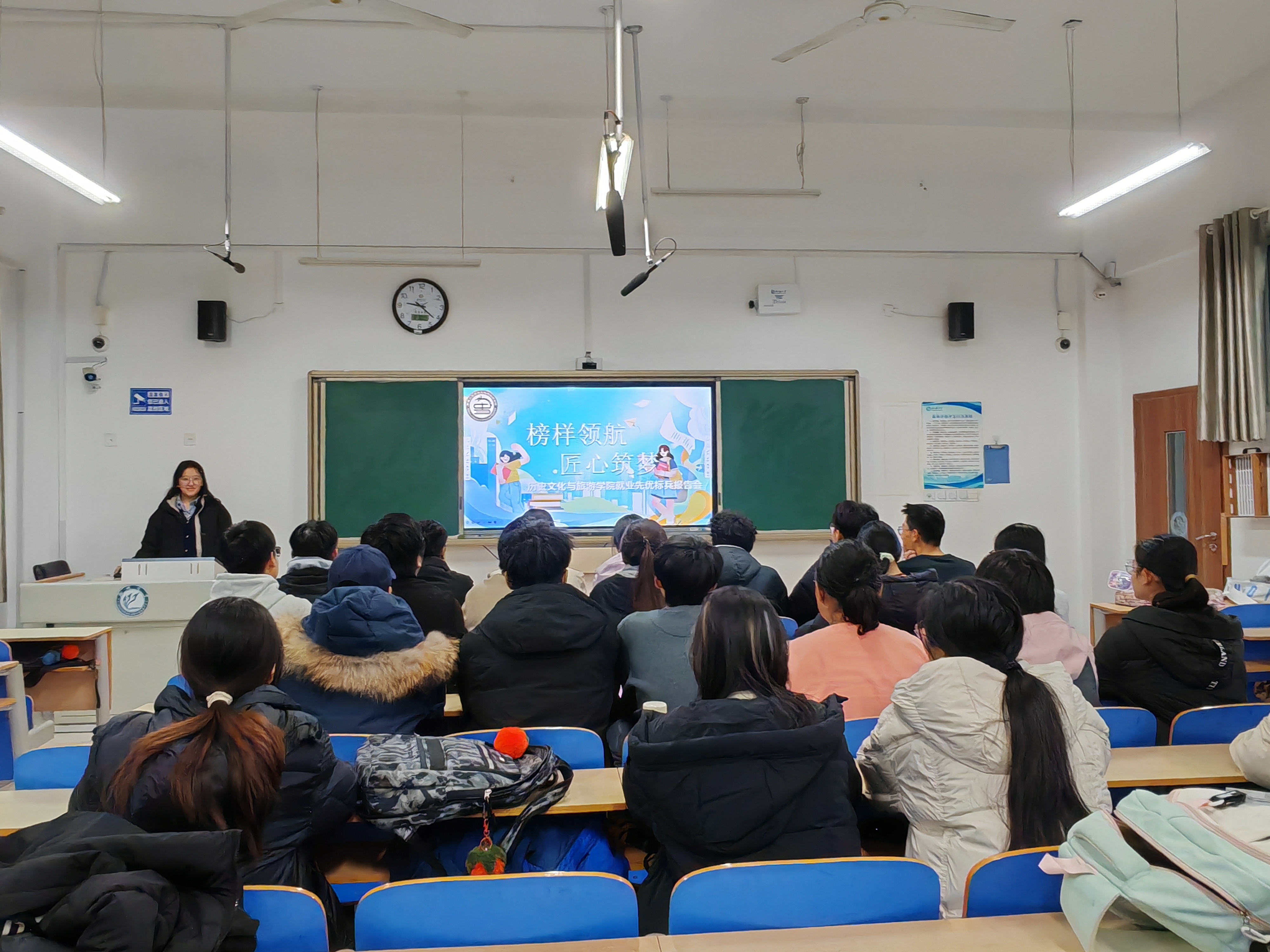 为帮助学生明晰就业方向,切实提升求职竞争力,推动就业指导工作走深走实,近日,我院于6#A404教室举办“榜样领航,匠心筑梦”就业先优标兵报告会。 报告会聚焦2024届西部计划志愿者代表孙天洋、张远霞的就业实践经历展开分享。主讲人结合孙天洋在新疆喀什英吉沙县实验中学的支教经历,围绕专业与岗位的适配性展开阐释,强调专业能力与岗位需求应实现双向匹配,鼓励学生在实践中快速融入工作角色。主讲人以张远霞在四川凉山喜德县的服务经历为切入点,为学生提供基层行政与志愿服务工作的实践指导。主讲人着重指出,统筹协调能力与沟通交流能力的培养至关重要,引导学生深刻认识实践沉淀的能力对青年扎根基层的重要作用。 活动总结环节,主讲人对两位榜样的实践经历进行系统梳理,并号召学生以时代需求锚定人生航向,以脚踏实地的实干精神铺就成长之路,引发在场学生的强烈共鸣。活动结束后,在场学生纷纷表示,未来自己将以两位标兵为榜样,主动对接基层发展需求,在祖国需要的领域贡献青春力量。 本次活动的顺利举办,不仅为学生清晰擘画就业价值与发展路径,助力学生破解就业迷茫,更以榜样力量唤醒学生将个人发展融入时代大局的责任意识,推动学生在服务社会、奉献祖国的过程中,找准个人价值定位,拓展成长成才的广阔舞台。 (供稿:韩笑 张旭 初审:郭艺泽 复审:宋佳珊 终审:尤姗姗)