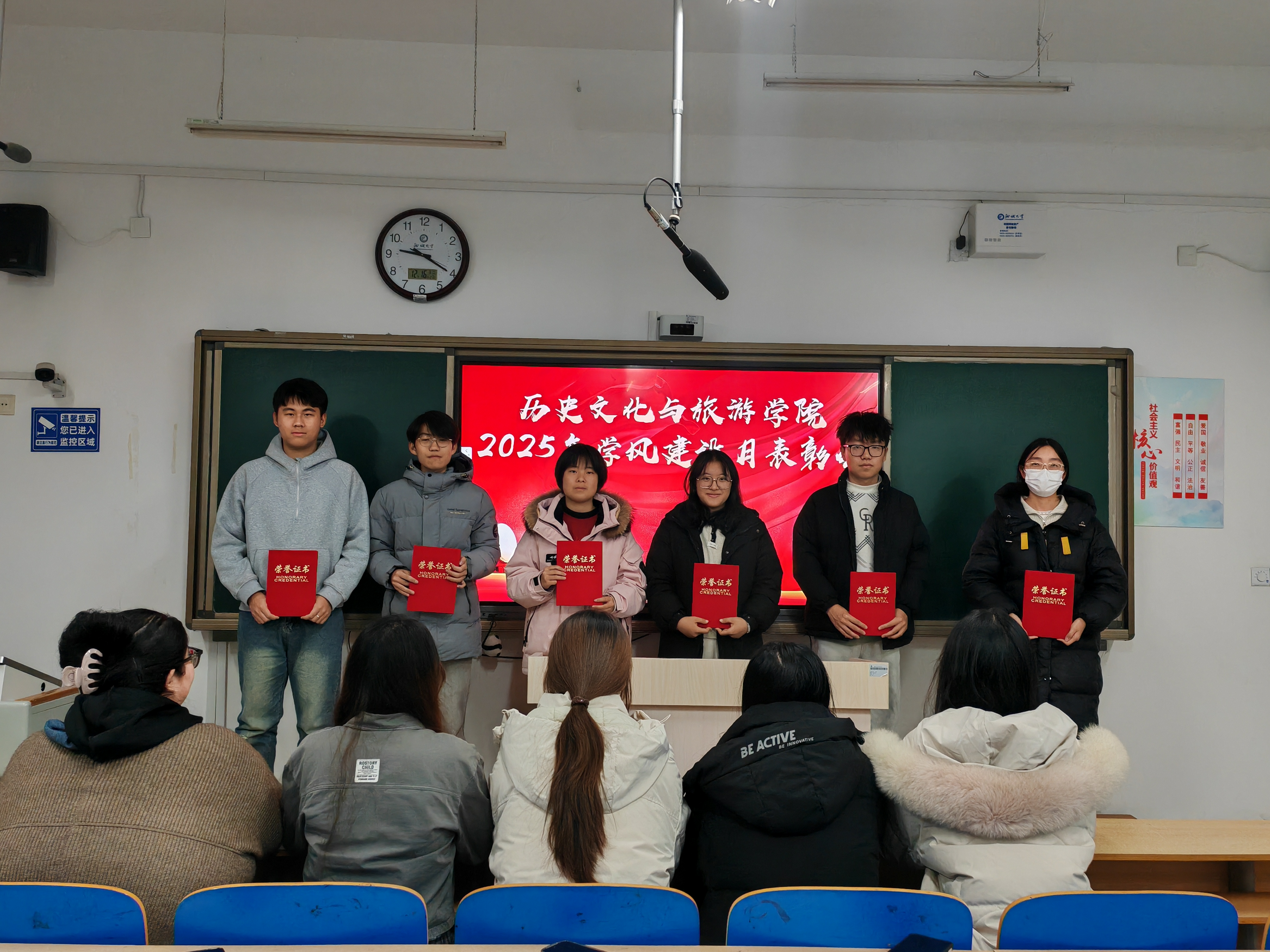 为总结学风建设成果,表彰先进典型,凝聚奋进力量,近日,我院于6#A305教室召开2025年学风建设月表彰会。 会上,学院负责人全面复盘学风建设月系列举措:依托“历史经典研读”“文旅实践赋能课堂”等特色载体,开展专题讲座、学习互助小组、书香班级活动、学科竞赛等多元活动,覆盖全院学生;创新推行“学风成长档案”动态管理机制,通过量化学习行为、跟踪学业进度,实现学风建设从“粗放引导”到“精准施策”的转变,学生课堂出勤率、学业达标率较往期显著提升。 会议对学风建设月中表现突出的优秀班级、优秀个人予以表彰,获奖代表分享了班级学风建设经验与个人学习方法,展现了学院学子勤学善思、笃行实干的精神风貌。 学院负责人在总结中提出未来规划:持续深化“课堂—社团—实践”三位一体学风建设体系,打造“一专业一特色”学风品牌;完善学风建设长效机制,将表彰激励与过程培养相结合,鼓励学生以榜样为镜,在学史研途中筑牢专业根基,以实干践行青春使命。 此次表彰会既是对学风建设月成果的集中展示,更是学院推进学风建设常态化、特色化的重要节点,为营造勤学笃实、创新争先的育人氛围注入新动力。