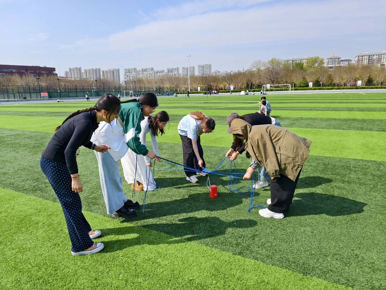 为帮助同学们更好认识自身优势与潜力,打破自我否定认知、建立积极自我认同,增强人际沟通与协作能力,近日,我院于东校区田径场举办“破壁融心,聚力共赢”心理团体辅导活动。 在“合力建塔”集体协作游戏中,主持人将同学们分为若干小组,各组需通过牵拉绳索共同控制吊具,平稳搭建积木塔。游戏过程中,同学们全心投入,信任同伴,指挥者清晰引导,操作者精准发力,共同克服重心不稳、力度不均带来的挑战,在默契配合中逐步搭建起稳固的“团队之塔”。 主持人引导同学们进行“双人夹球接力”挑战赛,进一步考验他们的心态调节与协作配合能力。活动要求两人一组用身体夹住气球,在规定距离内完成团队接力。面对气球易滑落、步伐需同步等困难,同学们主动展开讨论、快速调整策略,通过反复练习与互相鼓励,逐渐掌握节奏要领,顺利将气球传递至终点。 在你画我猜互动环节,主持人向首位同学展示数字或题目内容,待其明确信息后,作画者用夸张生动和富有表现力的肢体动作传达信息,后续猜题同学认真观察、积极联想、踊跃发言,在默契配合中喊出猜测的答案。 此次团体辅导以轻松互动的形式,为同学们打开释放情绪、舒缓压力的窗口,让他们在沉浸式体验中卸下心理负担、调整身心状态。活动不仅能锻炼同学们手眼协调能力,更让他们在直面困难、解决问题的过程中,学会理性调节负面情绪、保持耐心心态,为营造阳光健康的校园心理氛围注入活力。 (供稿:朱欣艺 刘雪怡 初审:王梦 复审:魏志鹏 终审:尤姗姗)
