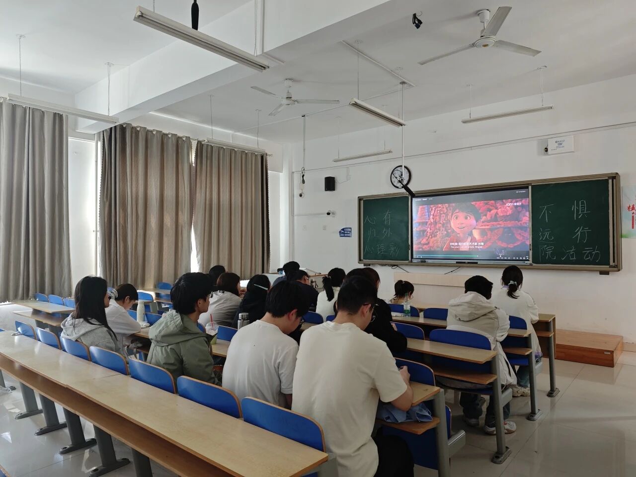 为舒缓同学们的学业与生活压力,引导其接纳自我、正视成长中的困惑,帮助他们树立积极健康的心态,4月12日,我院于6#A304教室举办“心有归处,不惧远行”心理观影活动。 本次活动观看的影片为经典动画电影《寻梦环游记》。主讲人简要讲解影片创作背景与核心主旨,围绕“梦想与家庭的平衡”抛出思考问题,带领同学们沉浸式开启观影之旅。影片讲述热爱音乐的小男孩米格意外穿越到亡灵世界,在追寻音乐梦想的过程中重新认识家族情感与记忆价值的动人故事。 观影过程中,同学们全神贯注,沉浸在米格奇幻的冒险旅程里。当电影中唱响《请记住我》时,不少同学被浓厚的亲情与记忆主题所打动,现场气氛温馨而专注。同学们认真关注米格与曾曾祖父赫克托之间的情感变化,在欢笑与泪水中体会梦想与亲情并非对立、而是可以相互成就的道理。在分享交流环节,同学们踊跃发言,结合自身经历畅谈对梦想、家庭与遗忘的理解,在倾听与表达中加深对影片主题的理解,也增进彼此之间的情感联结,现场讨论热烈。 此次心理观影活动以影像为媒介,搭建起情绪舒缓与心灵沟通的平台。既有效帮助同学们释放心理压力、调节情绪状态,也引导他们读懂亲情价值、正视内心需求,进一步提升其心理调适能力与心理韧性,为营造积极健康的校园心理文化贡献力量。 (供稿:张玉双 刘雪怡 初审:王梦 复审:魏志鹏 终审:尤姗姗)