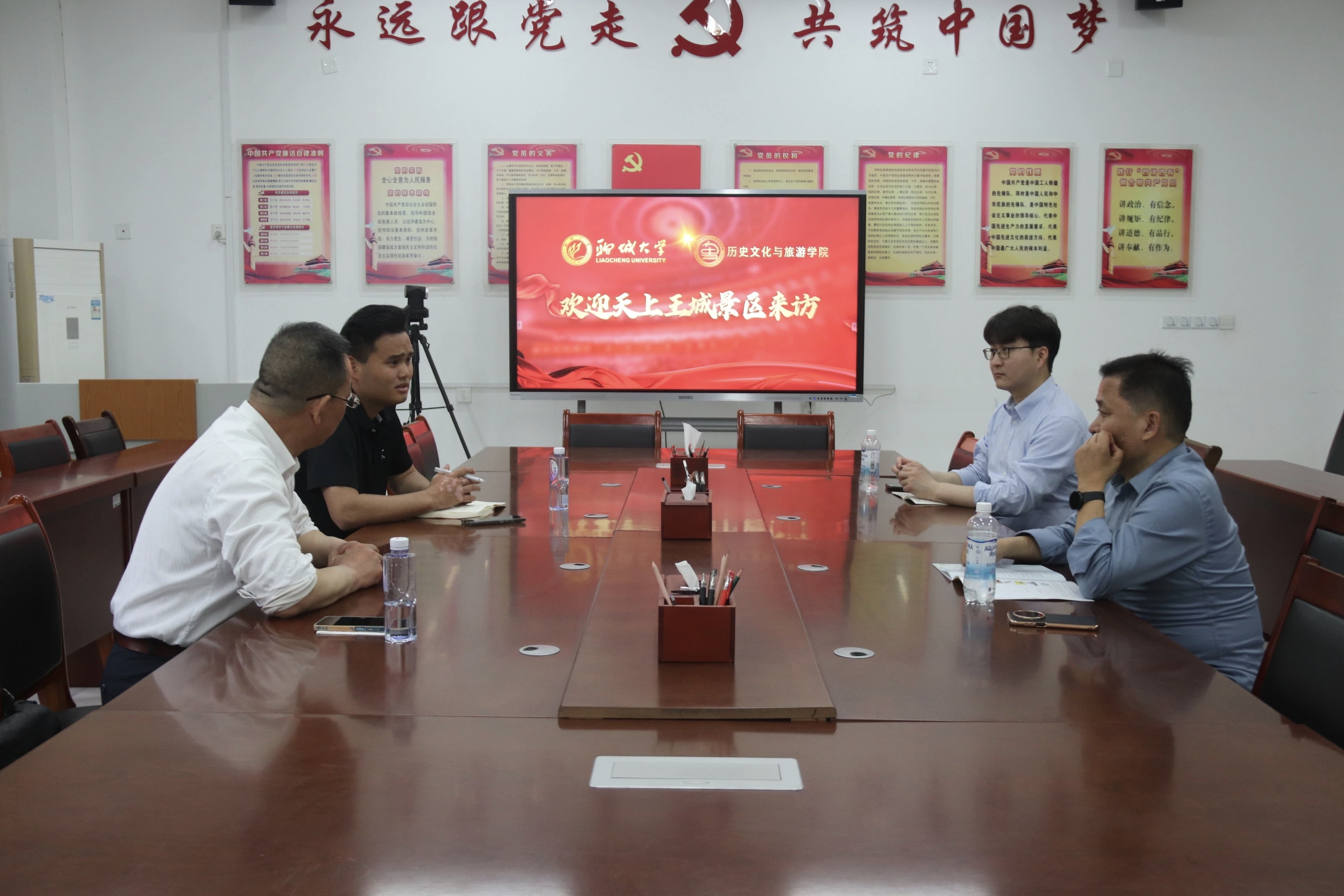为搭建校企深度合作桥梁,拓宽学生专业实践渠道,凝聚文旅融合发展合力,4月15日,临沂沂水天上王城景区经理杨伟现、景区顾问张景胜一行与我院进行座谈交流,会议由学院副院长官士刚主持。 交流期间,景区经理杨伟现结合景区发展实际,详细介绍景区核心文旅资源与产业发展特色,并重点阐述景区依托纪国王城历史遗址而形成的文旅发展优势。官士刚立足学院办学实际,阐述学科建设、人才培养模式与实践教学体系等相关内容,全面展示学院专业建设与育人成果。双方围绕考古遗址保护、沂蒙文化深度挖掘、教学资源与景区资源融合等议题深入研讨,不断凝聚校企合作共识,为双方长期协同发展筑牢基础。 校企双方以协同育人为核心,细化梳理后续合作事项,围绕实践基地共建、实习就业对接、研学课程开发等内容充分沟通,清晰划定合作推进路径,助力学院人才培育与景区产业建设双向提质。 洽谈尾声,景区负责人发出邀约,诚挚邀请学院师生前往景区进行实地调研,帮助在校学生感知考古文化内涵,积累文旅行业实践经验。官士刚对此作出积极回应,学院将合理统筹安排实践活动,推进实践教学走深走实。 校地携手传承历史古韵,校企同心助推文旅发展。本次洽谈有效搭建双方常态化沟通平台,持续拓展学生专业实践途径,促进学院学科特色与地方文旅资源互补融合,以校地协作助力区域文旅产业稳步发展。 (供稿:张旭 摄影:高越 初审:郭艺泽 复审:魏志鹏 终审:尤姗姗)